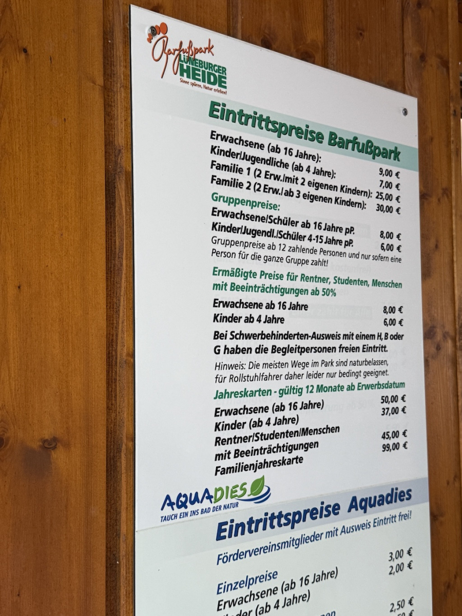 Aquadies: Das Naturerlebnisbad Aquadies liegt direkt neben dem Barfußpark und erfreut sich gerade im Sommer extremer Beliebtheit. Hier habt ihr kristallklares Wasser, es wird nicht umsonst eines der schönsten Naturbäder der Nordheide genannt. Ein Erlebnisbad für Groß und Klein.
