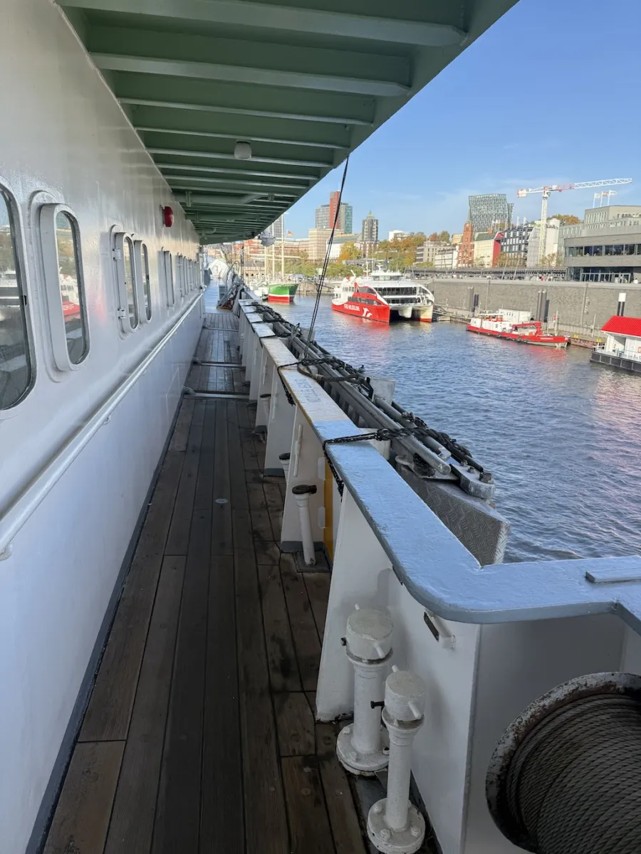 Zu jeder Übernachtung gehört außerdem ein Frühstück an Bord – ein stimmungsvoller Start in den Tag mit Blick auf Elbe oder Hafen.