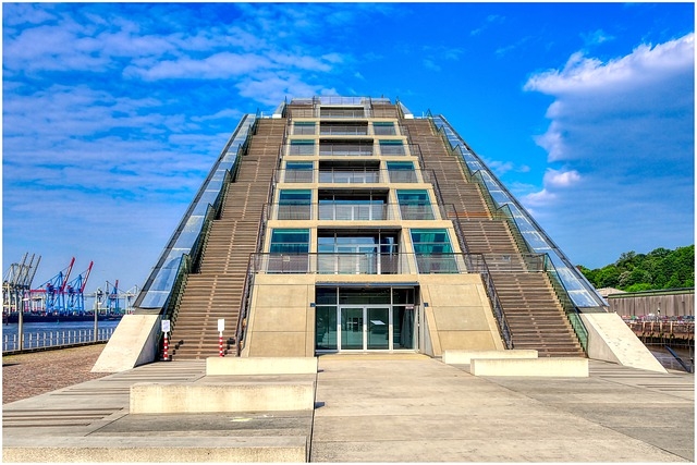 Das Besondere am Dockland ist auch seine Parallelogramm-Architektur, die passenderweise an ein Schiffsbug erinnert und sich damit perfekt in den Hafen einfügt. Das 330 Tonnen schwere Gebäude ragt 40 Meter auf die Elbe. Für den Bau wurde unter anderem Stahlbeton, licht- und windgesteuerte Lamellenraffstores und jede Menge doppelte Glasfassaden und Stahl genutzt.