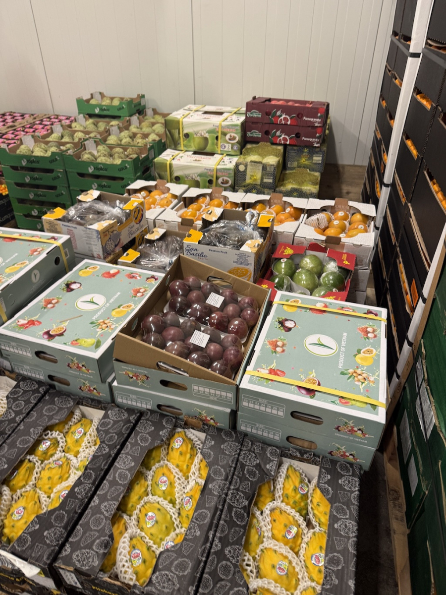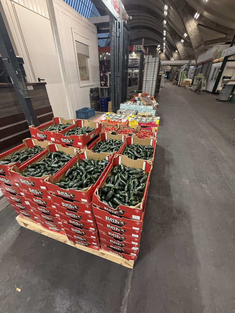 Hier schlägt das kulinarische Herz des Großmarktes. In den Nacht- und frühen Morgenstunden kommen Lieferungen aus der Region, aus Deutschland und aus aller Welt an. Von knackigen Salaten, Gurken und Kohl über Beeren und Äpfel bis zu exotischen Früchten – alles ist auf Frische, Qualität und Geschwindigkeit ausgerichtet.