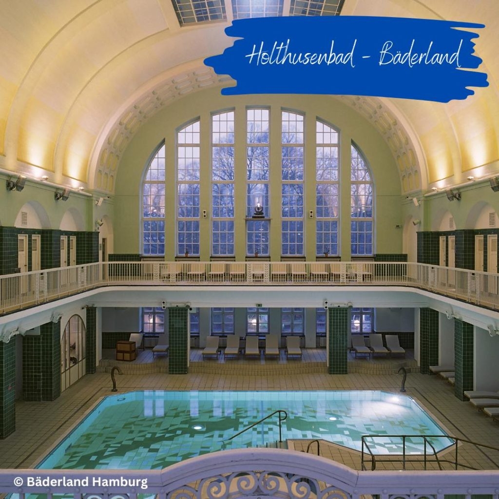 In der Nähe der U-Bahn-Station Kellinghusenstraße, in einem der etwas gehobeneren Stadtteile, findet ihr das wunderschöne Holthusenbad des Bäderlands Hamburg.