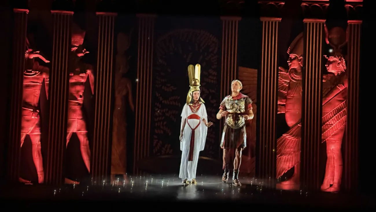 In einem acht Meter hohen 360-Grad-Videomapping-Raum wirst du komplett von Kleopatras Geschichte umgeben. Von ihrer Krönung über die berühmte Bibliothek von Alexandria bis hin zu ihrer Liebesgeschichte mit Marcus Antonius – alles wird zum Leben erweckt.