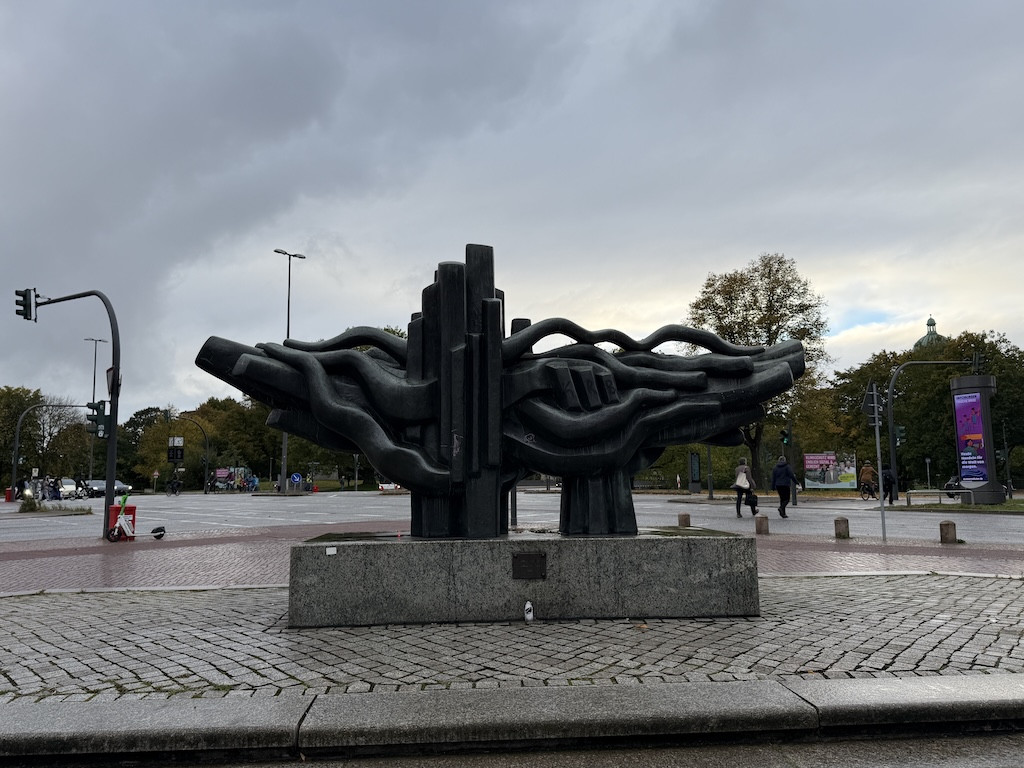 Das Denkmal „Hommage an Brahms“ befindet sich direkt auf dem Johannes-Brahms-Platz in Hamburg, unmittelbar vor der Laeiszhalle.