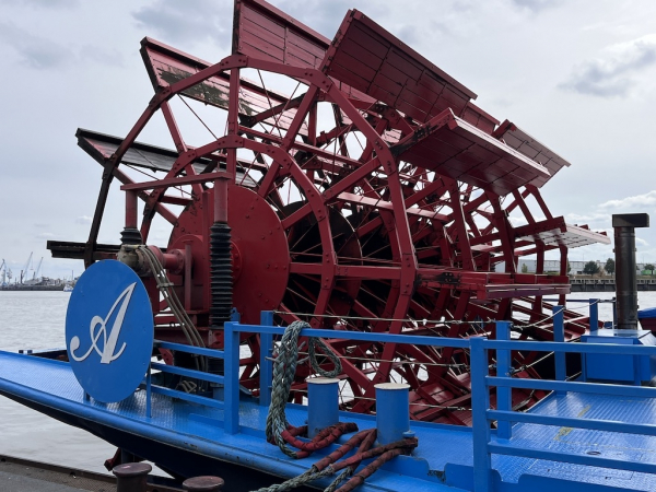 Steigst du ein, lässt du dich auf eine maritime Südstaatenfahrt ein und fühlst dich wie in einem alten amerikanischen Film. Dazu tragen die vier Schornsteine bei, das Schaufelrad und die Einrichtung. An Bord wurde ebenso viel Liebe ins Detail gesteckt: Der rote Teppich, die Galerien, Bögen und Säulen versprühen ein besonderes Ambiente, welches du so schnell nicht vergessen wirst.