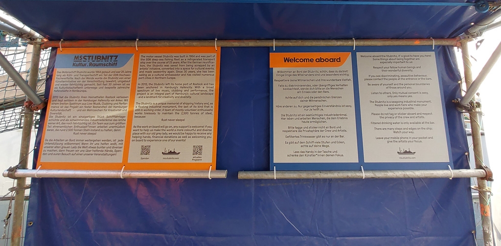 Bald startet eine weitere Bauphase in der HafenCity, welche den aktuellen Liegeplatz gefährdet – ebenso wie der Bezug der Neubauten. Die Anwohner:innen wünschen kein „Partyschiff“ vor ihren Fenstern, weswegen die MS Stubnitz wahrscheinlich nicht an ihrem aktuellen Ort bleiben kann. Die Diskussionen dauern an und wir hoffen sehr, dass bald eine Lösung für alle Beteiligten gefunden wird.