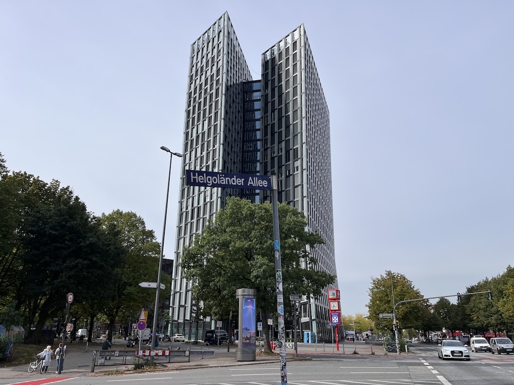 Die tanzenden Türme befinden sich direkt bei der Reeperbahn in Hamburg.
