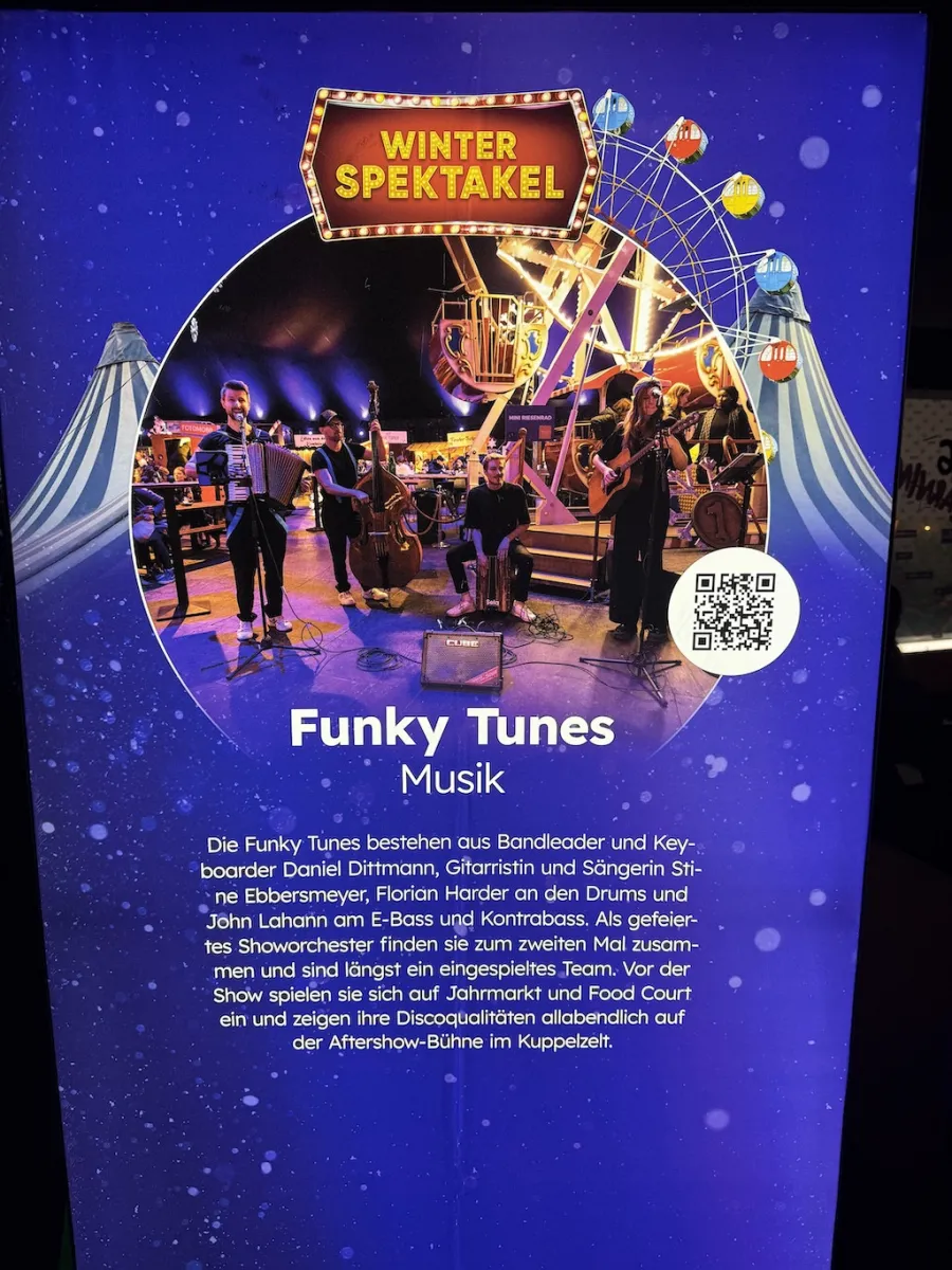 Die Liveband „Funky Tunes“ begleitet alles mit Funk, Groove und Pop – 100 % live, ohne Playback.